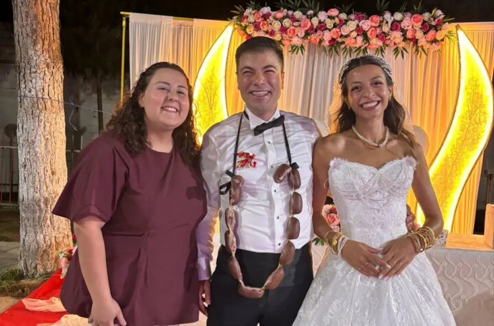 Aydın'ın İncirliova ilçesinde, bir düğünde kasap Buse Şimşek, damada altın yerine sucuk takarak katılanları...