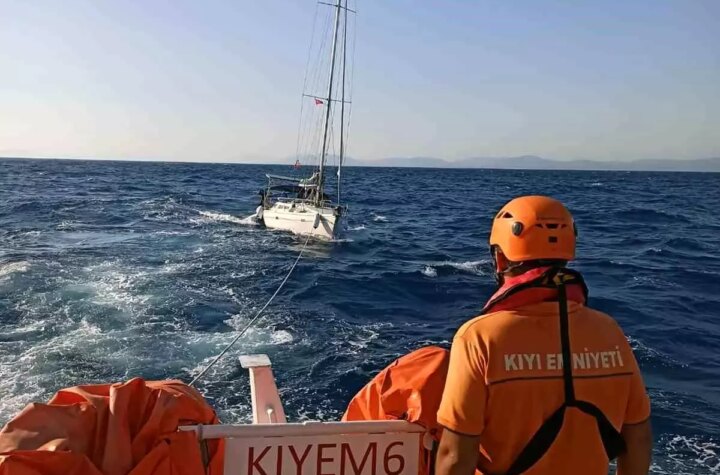 Muğla'nın Datça ilçesi açıklarında makine arızası nedeniyle sürüklenen yelkenli tekne, Kıyı Emniyet Genel Müdürlüğü...